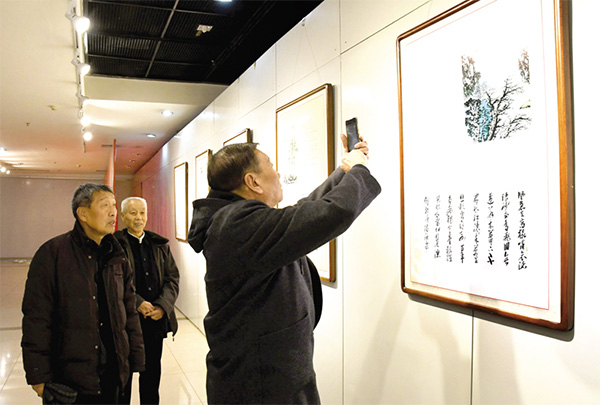詩情畫意迎新年。12月26日,國學文化教育展在市展覽館開展,共展出唐詩、宋詞、元曲中的經典作品100首。作品融合了中國古代繪畫藝術、書法藝術,并配以精彩賞析短文,完美展示了“唐宋元一脈相承,詩書畫三絕合璧”的藝術。展覽由市文旅局主辦,2020年1月5日截止。圖為觀展市民正在用手機拍攝自己喜歡的作品。